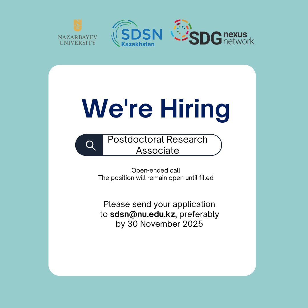 Please send your application and/or questions via e-mail to sdsn@nu.edu.kz, preferably by 30 November 2025, and the position will remain open until filled. Applications must be submitted in English as a single PDF file. Only complete applications will be accepted with the following documents: